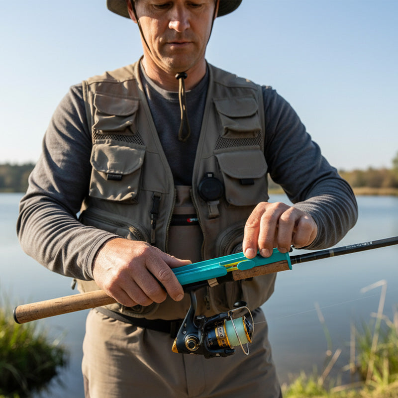 SYSTÈME DE FIXATION UNIVERSEL - Se fixe solidement à votre canne à pêche grâce à des sangles en caoutchouc souple réglables. Cette méthode de fixation polyvalente garantit un ajustement parfait sur différents diamètres de canne sans rayer ni endommager la finition, protégeant ainsi votre équipement.