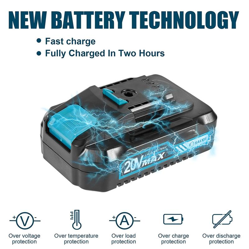 Batterie Grande Capacité et Longue Durée de Vie - Découvrez l'endurance de coupe inégalée de notre scie électrique de 6 pouces. Au cœur de cette puissance se trouvent deux batteries lithium-ion de 6000mAh, offrant plus de stockage d'énergie que tout autre concurrent sur le marché. Ces batteries robustes, amovibles et rechargeables assurent que vous pouvez affronter même les tâches extérieures les plus exigeantes sans interruption.