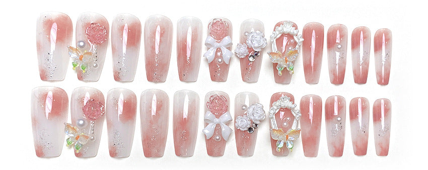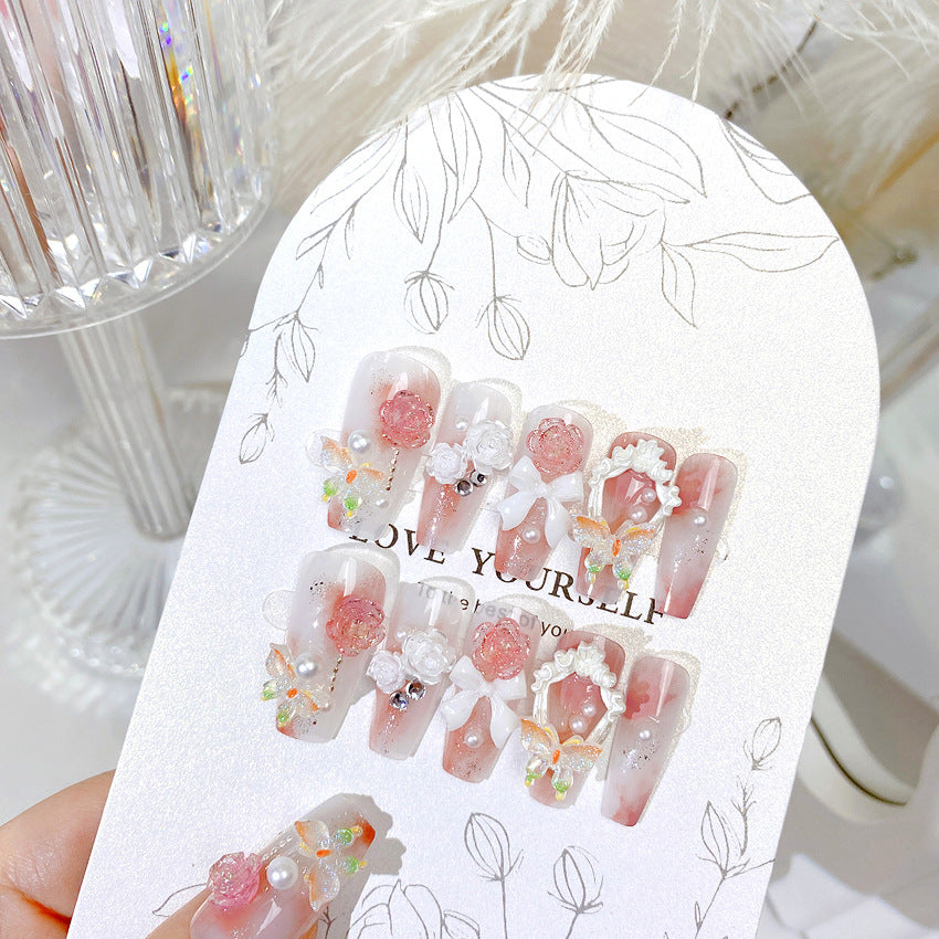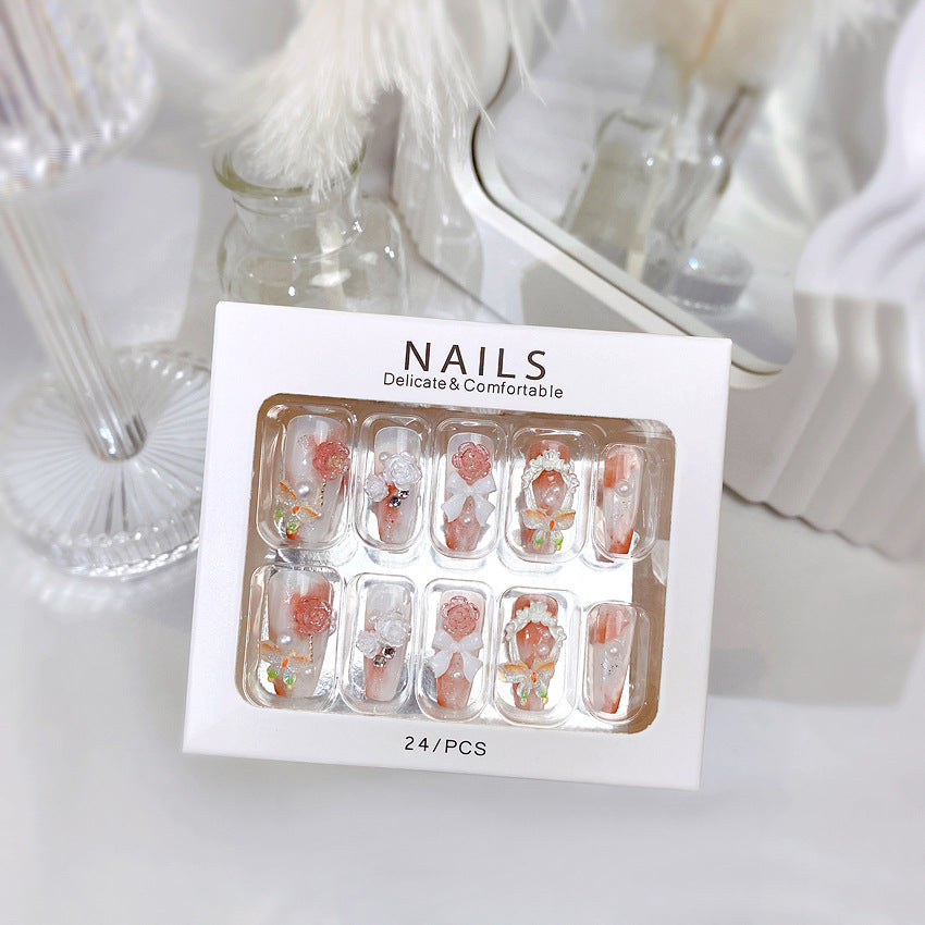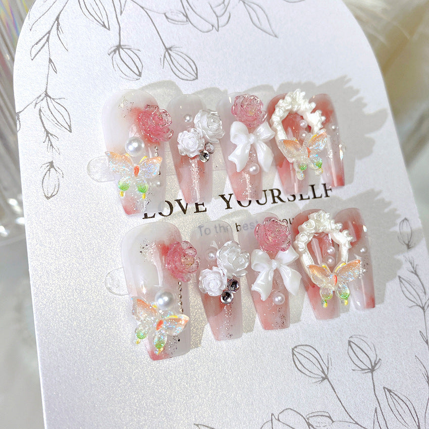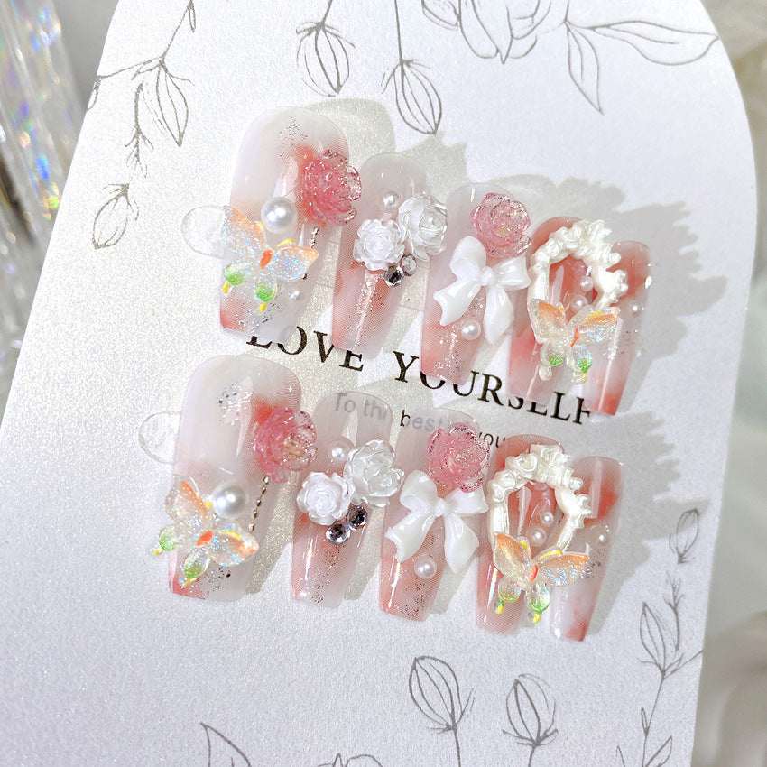 💅Ongles Préfabriqués avec Fleurs et Nœuds🌸