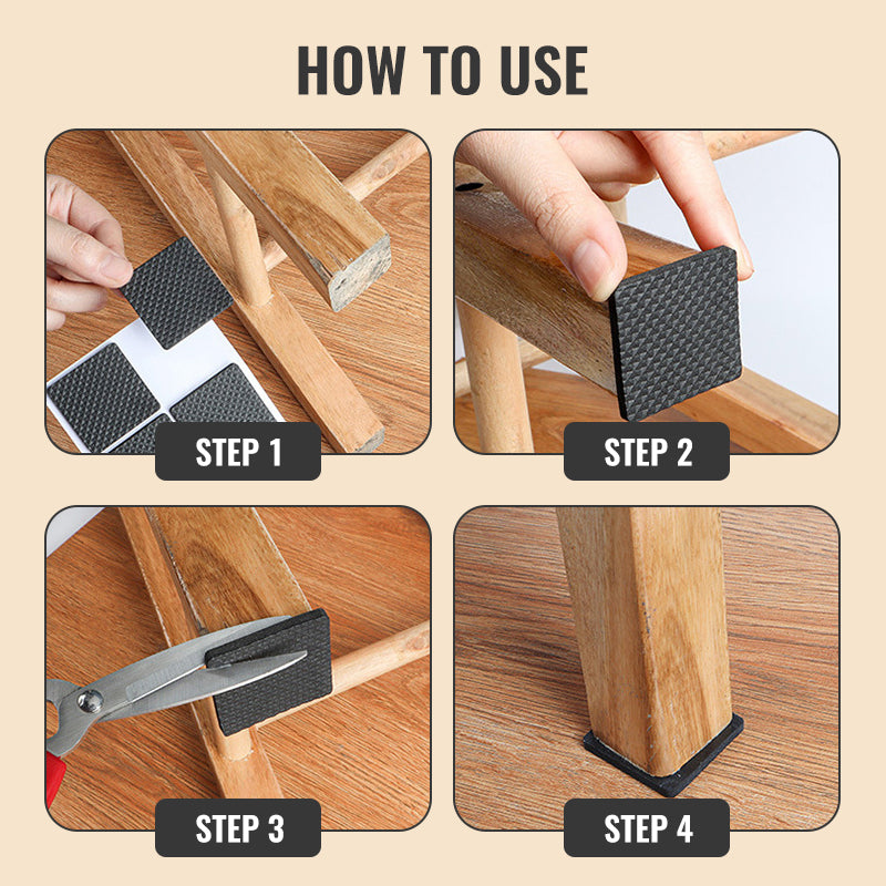STABILITÉ AMÉLIORÉE DES MEUBLES - Appliquez ces patins sur les pieds des meubles pour éviter qu'ils ne vacillent et améliorer leur stabilité générale.