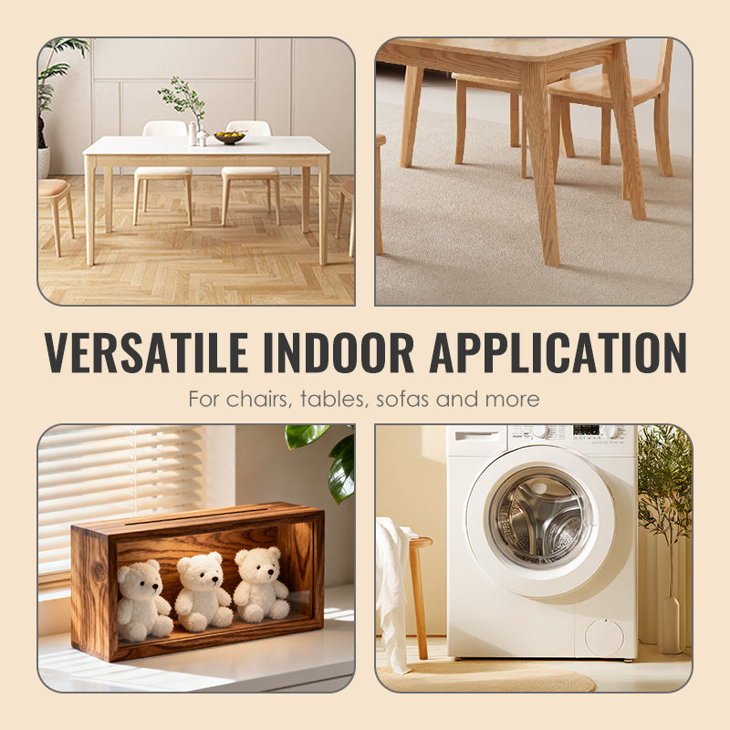APPLICATION POLYVALENTE - Convient à une large gamme de meubles ménagers, notamment les chaises, les tables, les canapés, les armoires et autres articles. Leurs formes compactes, rondes et carrées permettent une utilisation dans divers scénarios, offrant une protection essentielle et une réduction du bruit partout où cela est nécessaire à l'intérieur.
