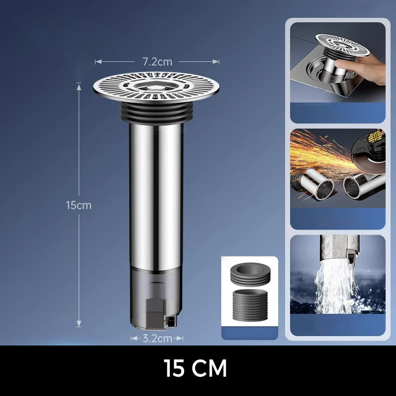 CONCEPTION ÉTENDUE : Avec des longueurs étendues de 6,5 cm, 11 cm et 15 cm, ce drain s’adapte parfaitement à différentes épaisseurs de sol, offrant ainsi une solution universelle pour les salles de bains modernes.