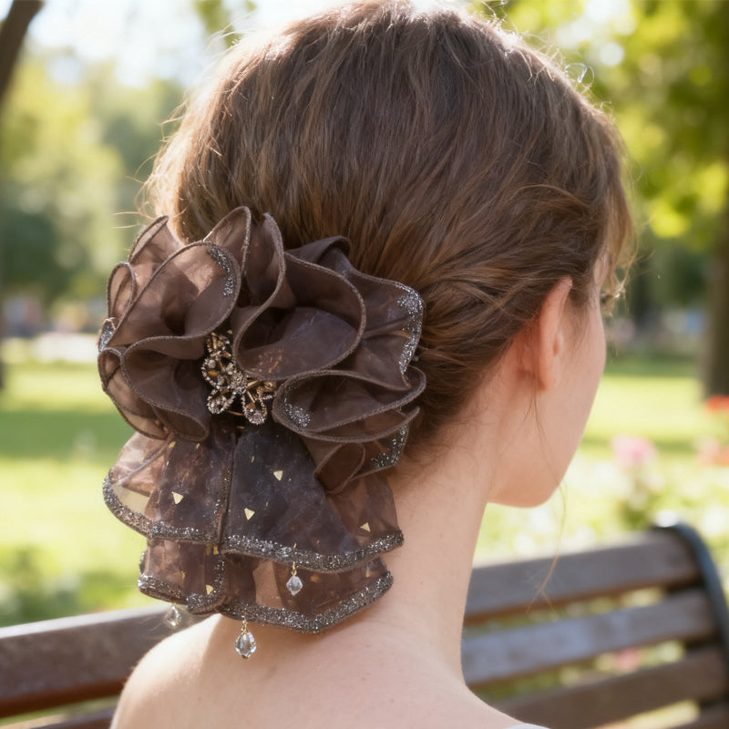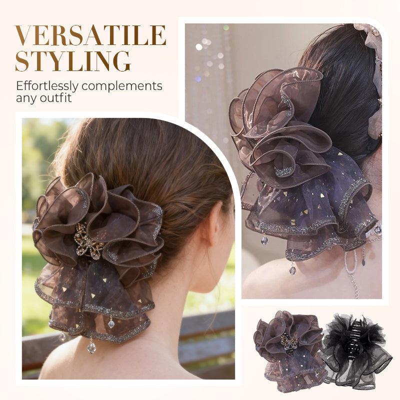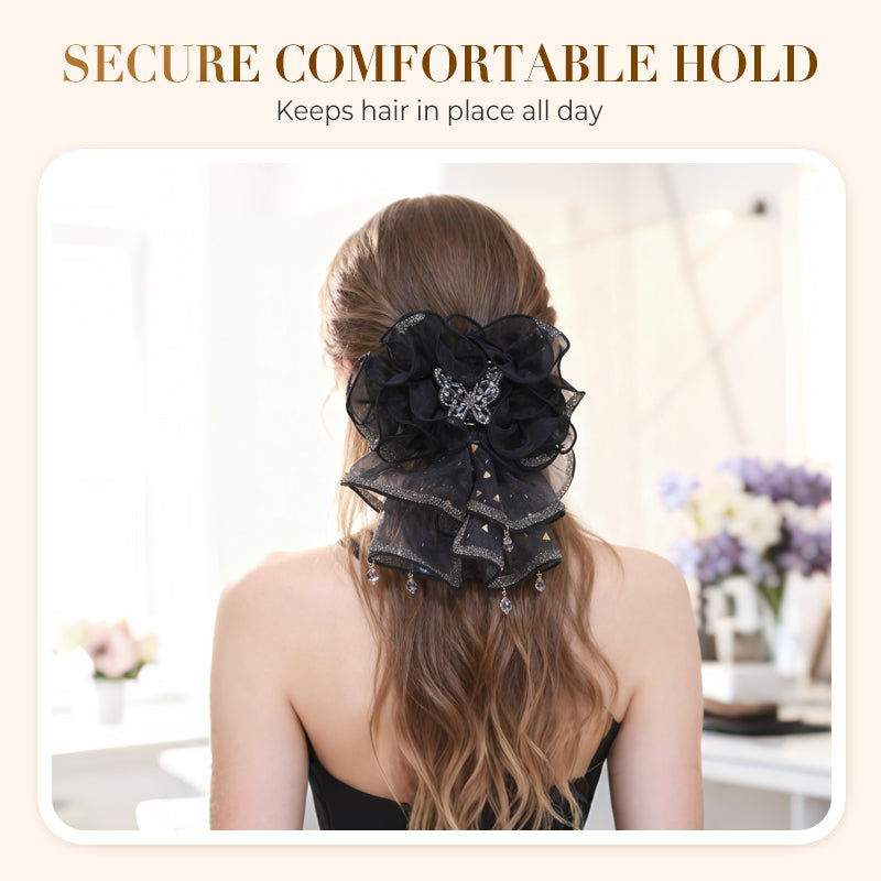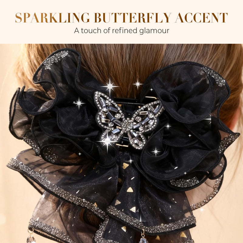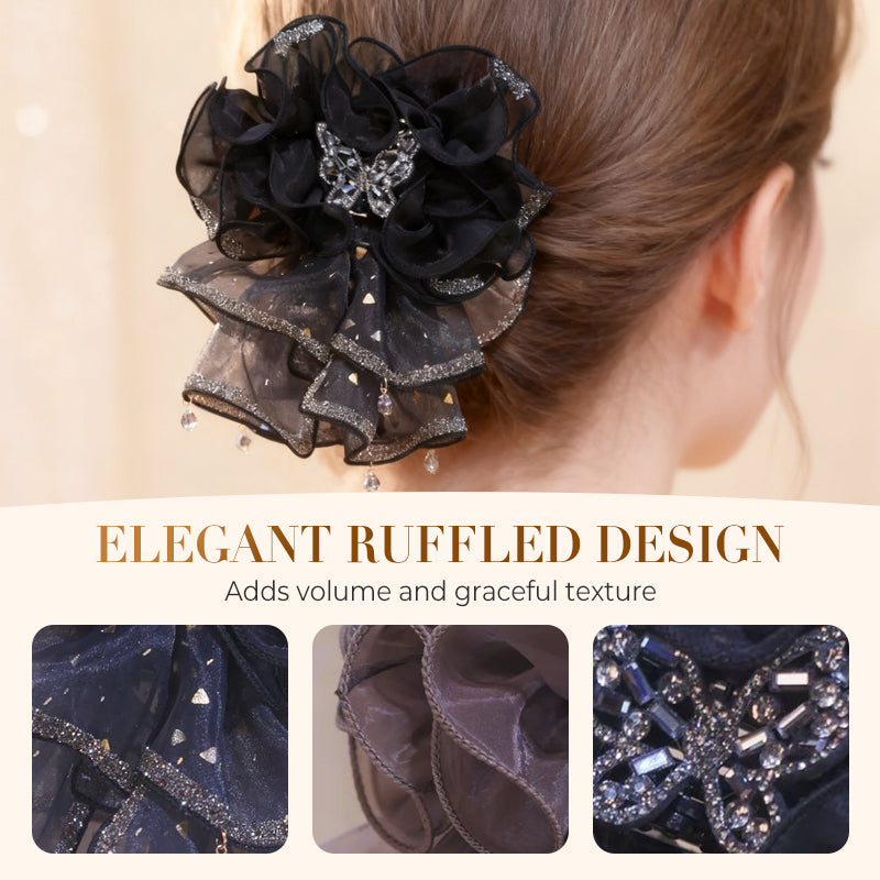 Pince à cheveux papillon en organza à volants