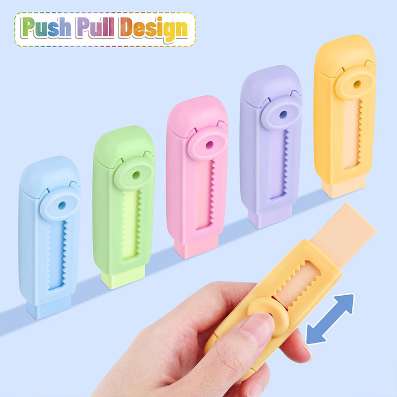 ESCAMOTABLE: Ayant une fonction rétractable unique, il suffit de tirer pour ajuster la longueur de la gomme pour un contrôle pratique de la zone d’effacement.
