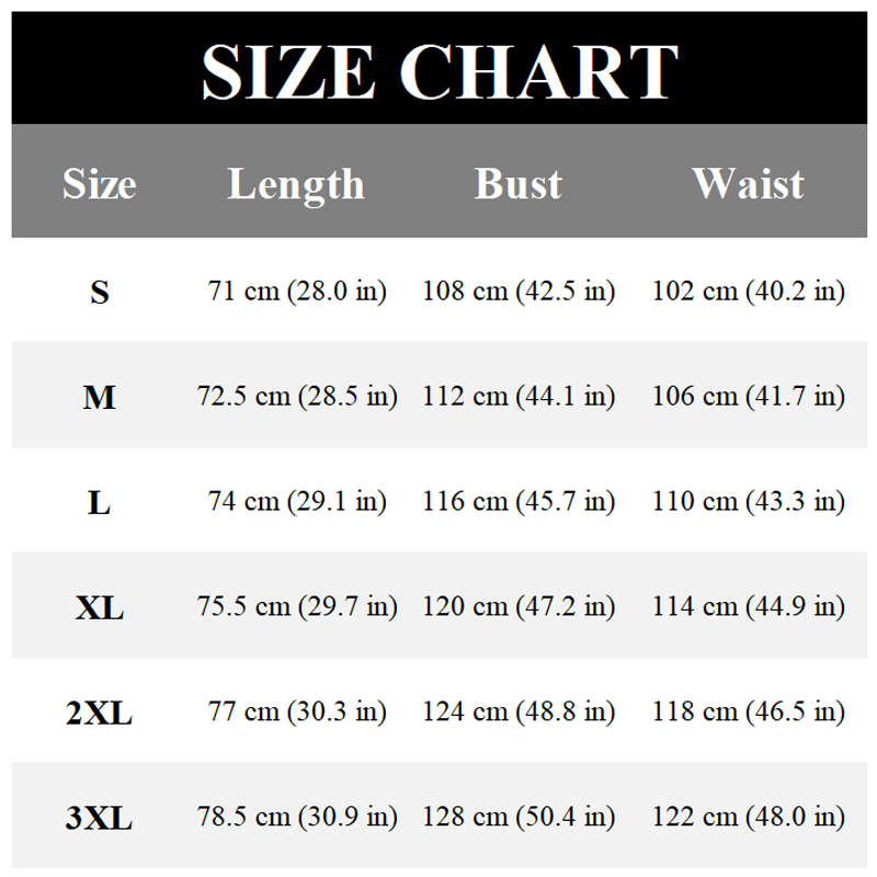 Taille : S, M, L, XL, 2XL, 3XL.