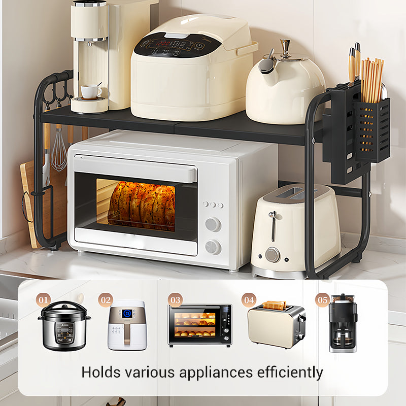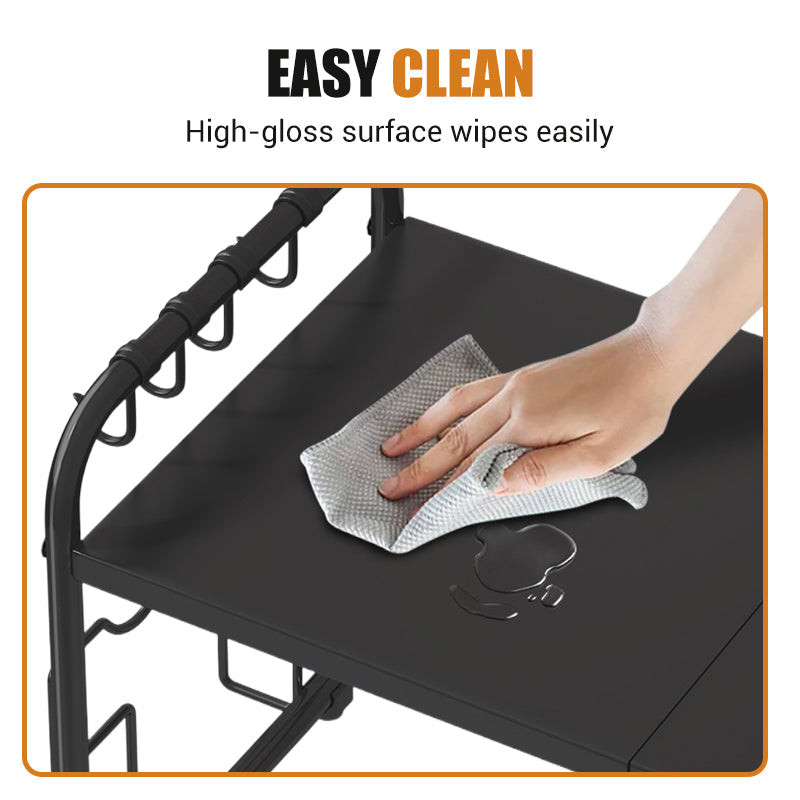 MULTIFONCTIONNEL - Conçu pour accueillir une variété d’appareils de cuisine et de conteneurs de rangement, ce support maximise l’efficacité du comptoir. Il permet de placer simultanément des micro-ondes, des mélangeurs, des grille-pain ou d’autres appareils tout en gardant les articles fréquemment utilisés à portée de main. En combinant organisation et polyvalence, le support aide à réduire l’encombrement et à rationaliser la préparation des repas, ce qui en fait un outil essentiel pour les cuisines de toutes tailles.