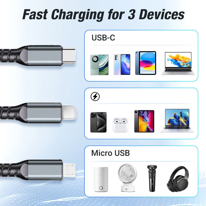 🔥2025 Ventes Chaudes🔥Chargement super rapide 100w, câble de données transparent 3-en-1