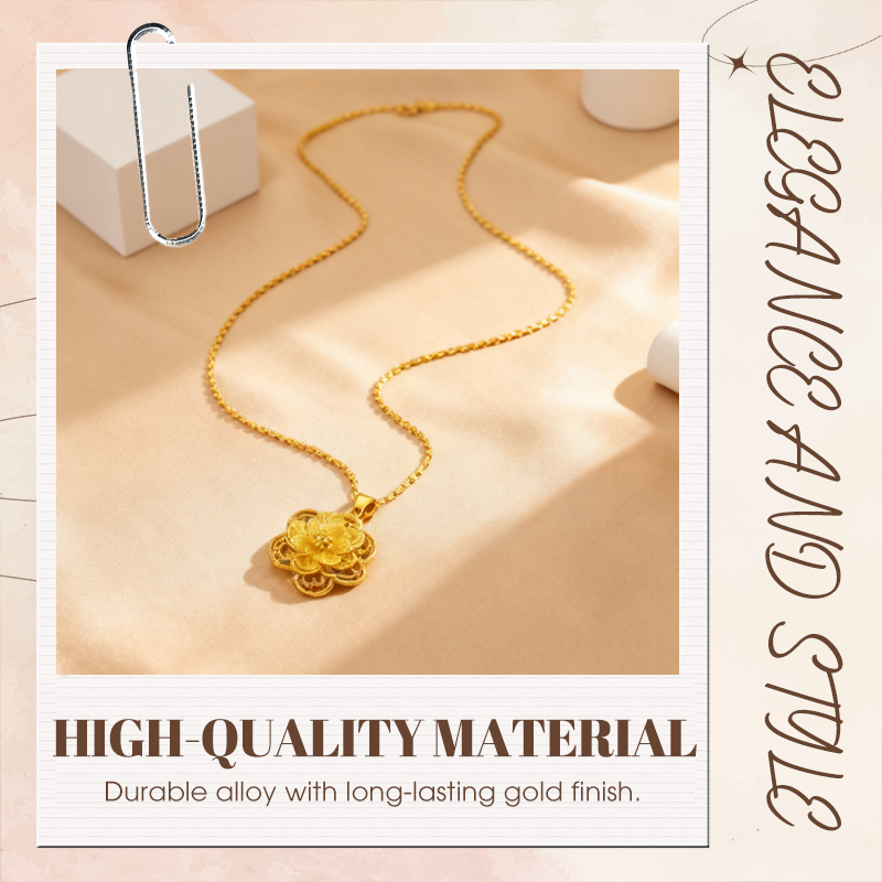 DESIGN ÉLÉGANT : Ce pendentif en forme de fleur dorée présente un design creux et complexe aux détails raffinés, qui ajoute une touche de féminité et de sophistication à toutes vos tenues.