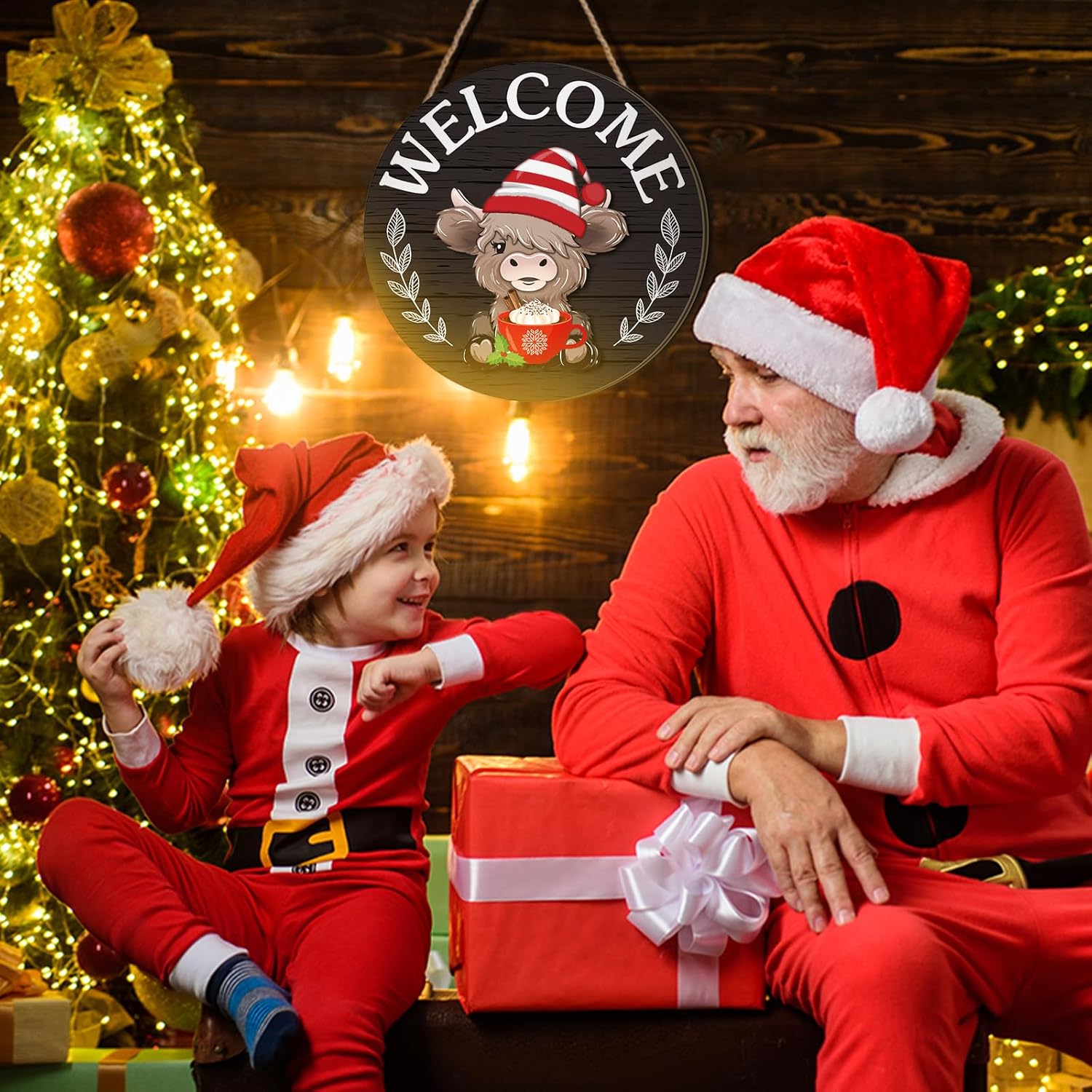 â° Enseigne de Bienvenue Interchangeable avec Vache Highland Avec aimants saisonniers, chapeaux amovibles et accessoires
